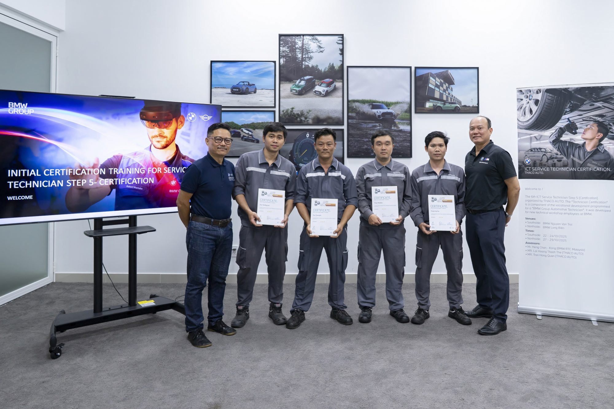 Từ ngày 22 – 29/10, 19 nhân sự kỹ thuật máy gầm điện BMW tại Hà Nội và TP.HCM tham gia kỳ thi cấp chứng chỉ “ICT Service Technician Step 5 – Certification” năm 2025 sau nhiều tháng tham gia đào tạo. Đây là năm thứ 6 THACO AUTO phối hợp cùng Tập đoàn BMW tổ chức chương trình đánh giá và cấp chứng chỉ quốc tế.